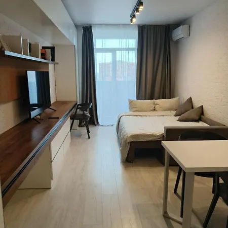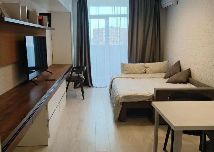 Гості можуть користуватися обладнаною кухнею з електрочайником, холодильником і духовкою для самостійного приготування їжі. Найближча станція метро Виставковий центр знаходиться за 5 хвилини пішки.